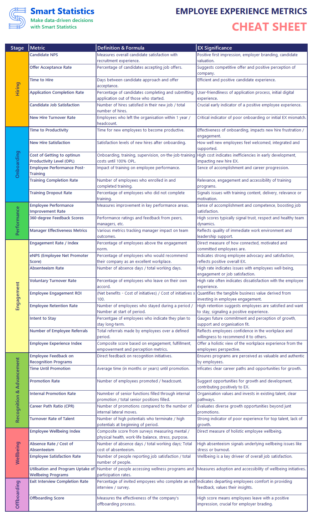 Employee Experience Metrics Cheat Sheet